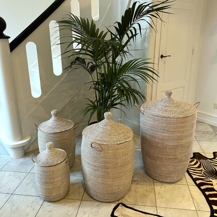 Laundry basket, White, handwoven with Senegal lid. Fair Trade