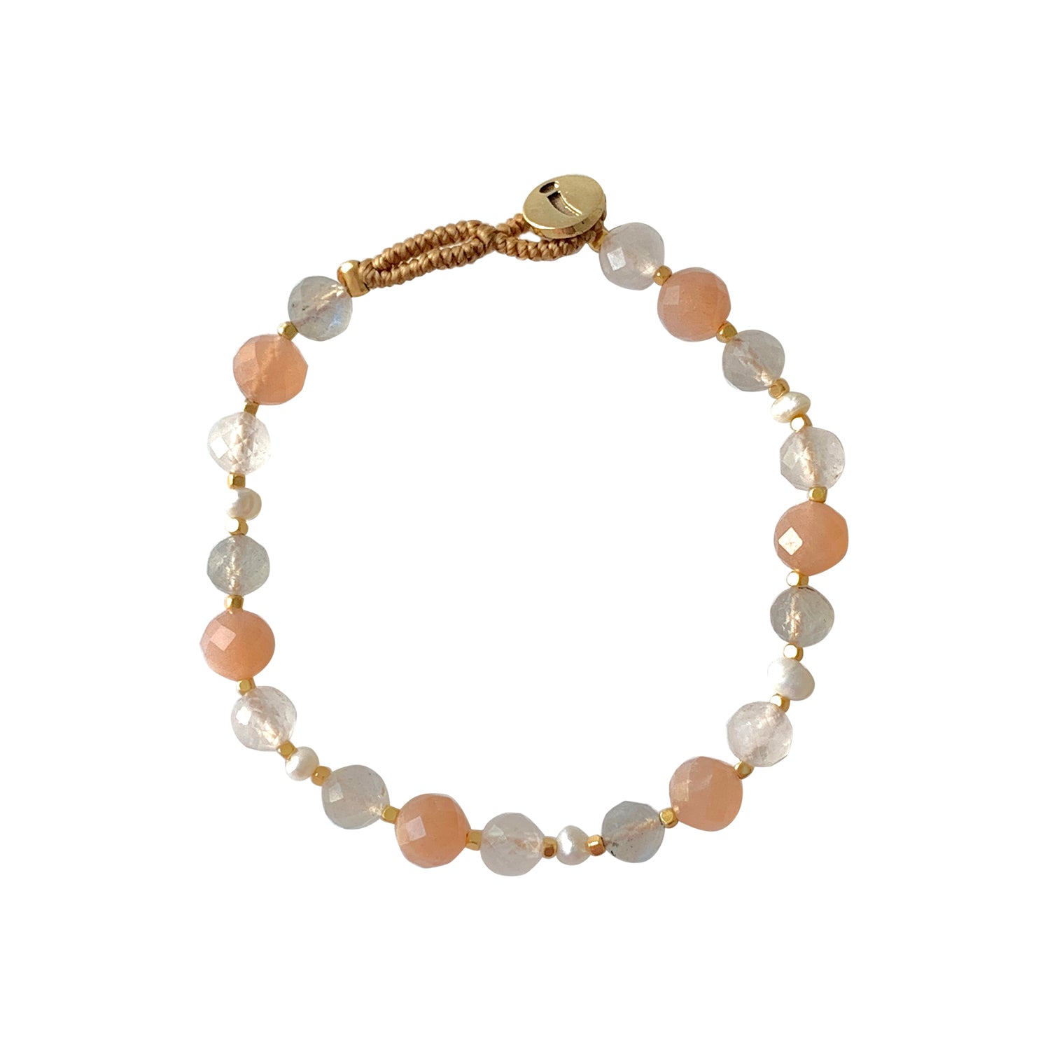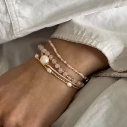 The bracelets combine fine, small, colored pearls, semi-precious stones and sterling silver with 14 carat gold plating in the most beautiful way. The small beads are woven tightly.