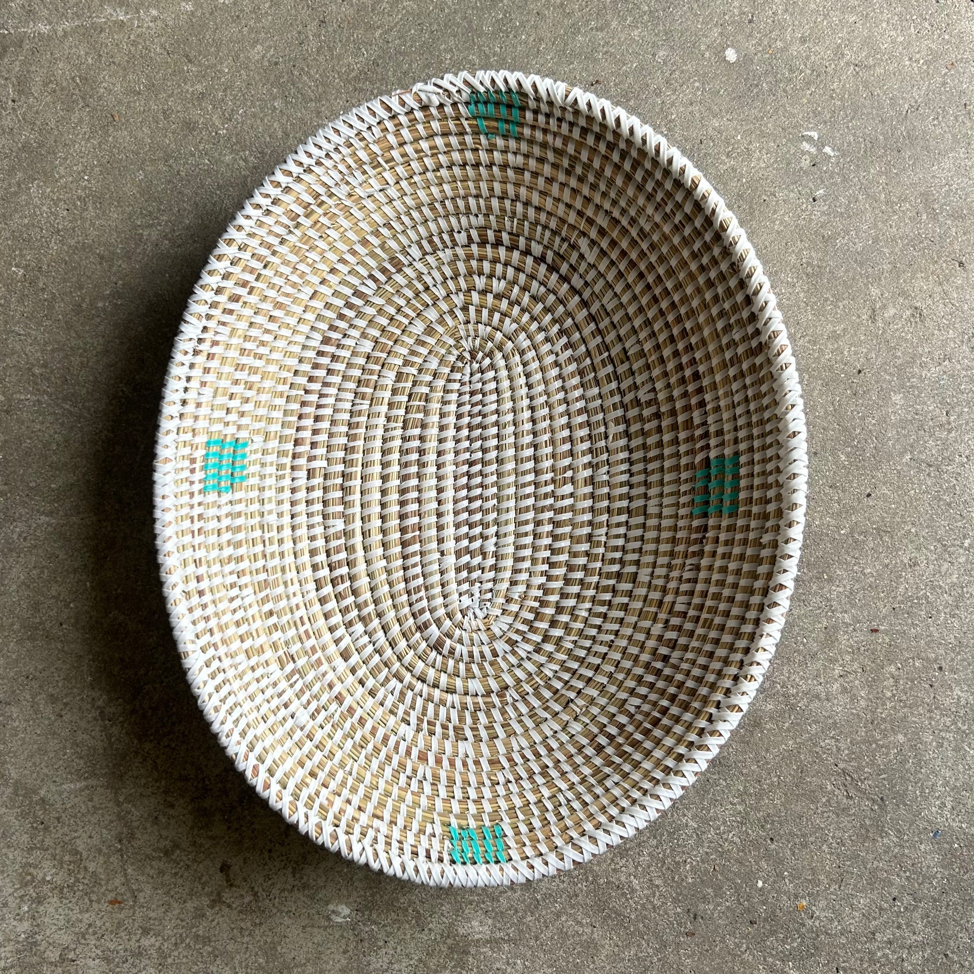 Bread tray in colorful patterns. Oval. Handwoven. Fair Trade from Senegal