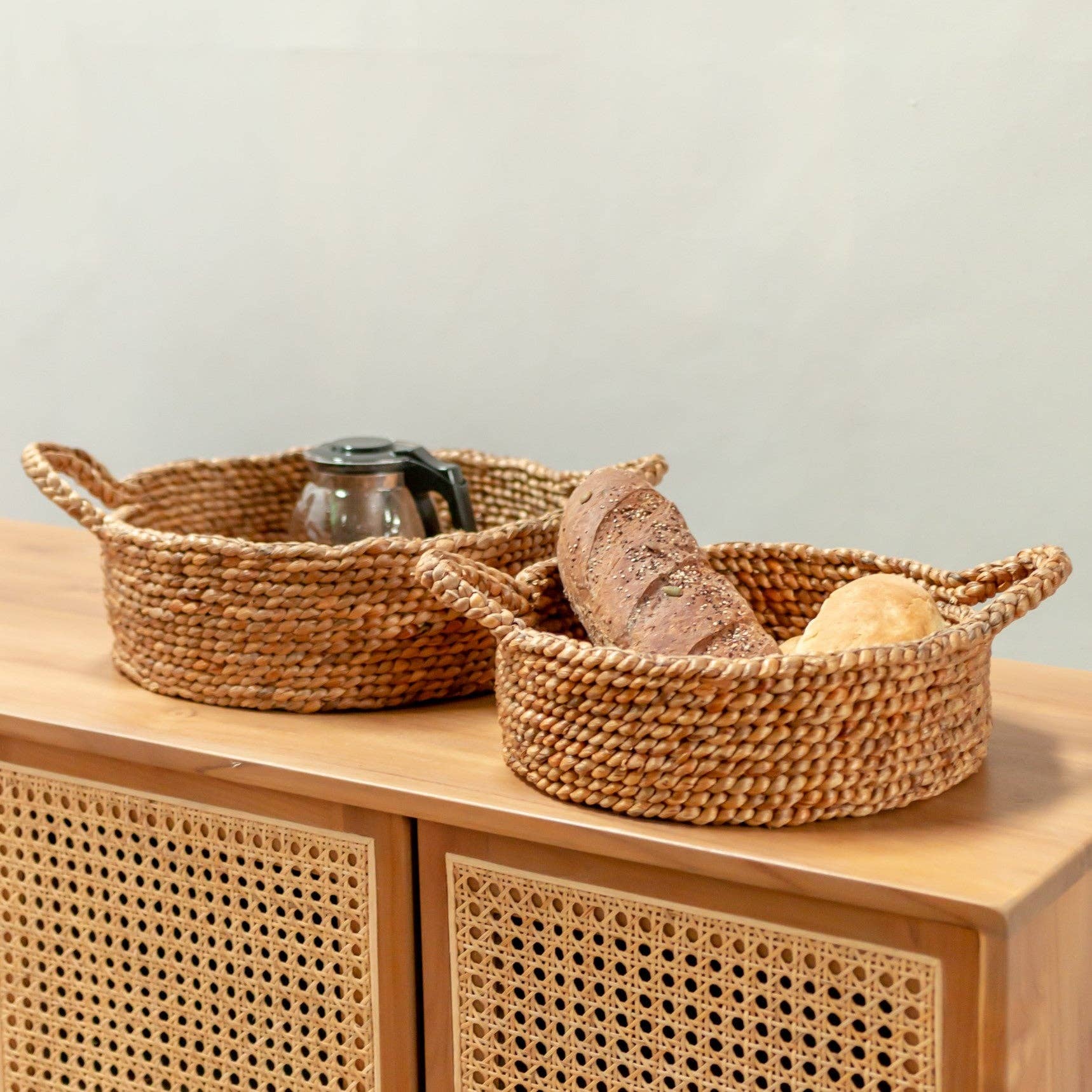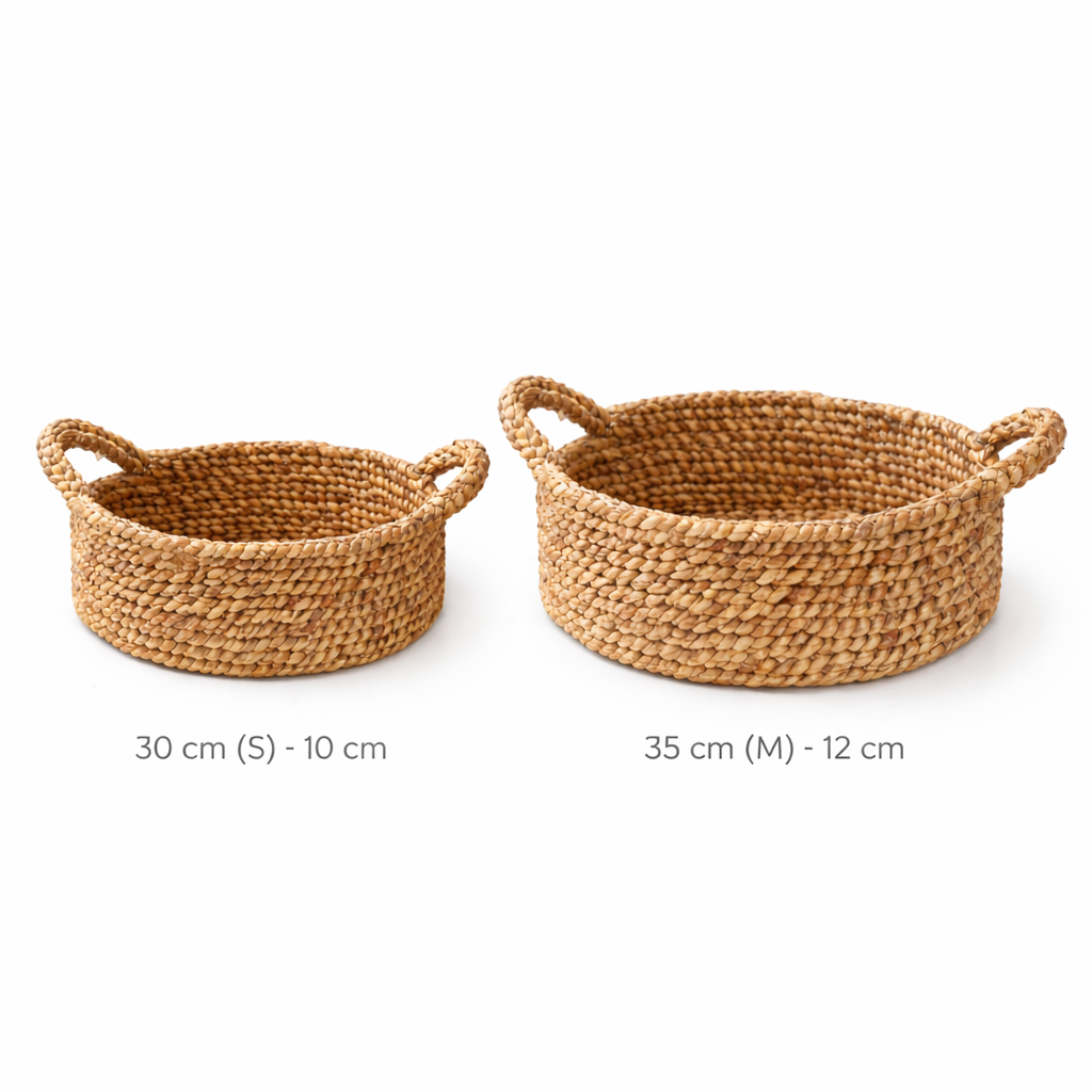 Vores lille, runde kurv er perfekt som en praktisk brødkurv på morgenbordet. Eller som frugtskål på bordet eller serveringsbakke til kaffen.