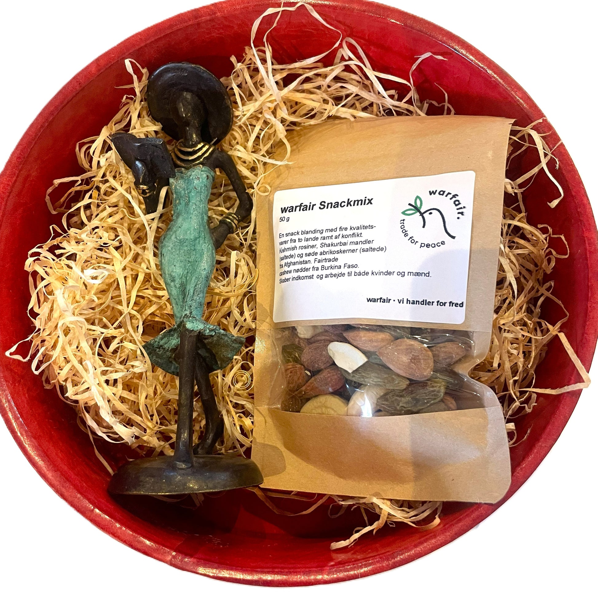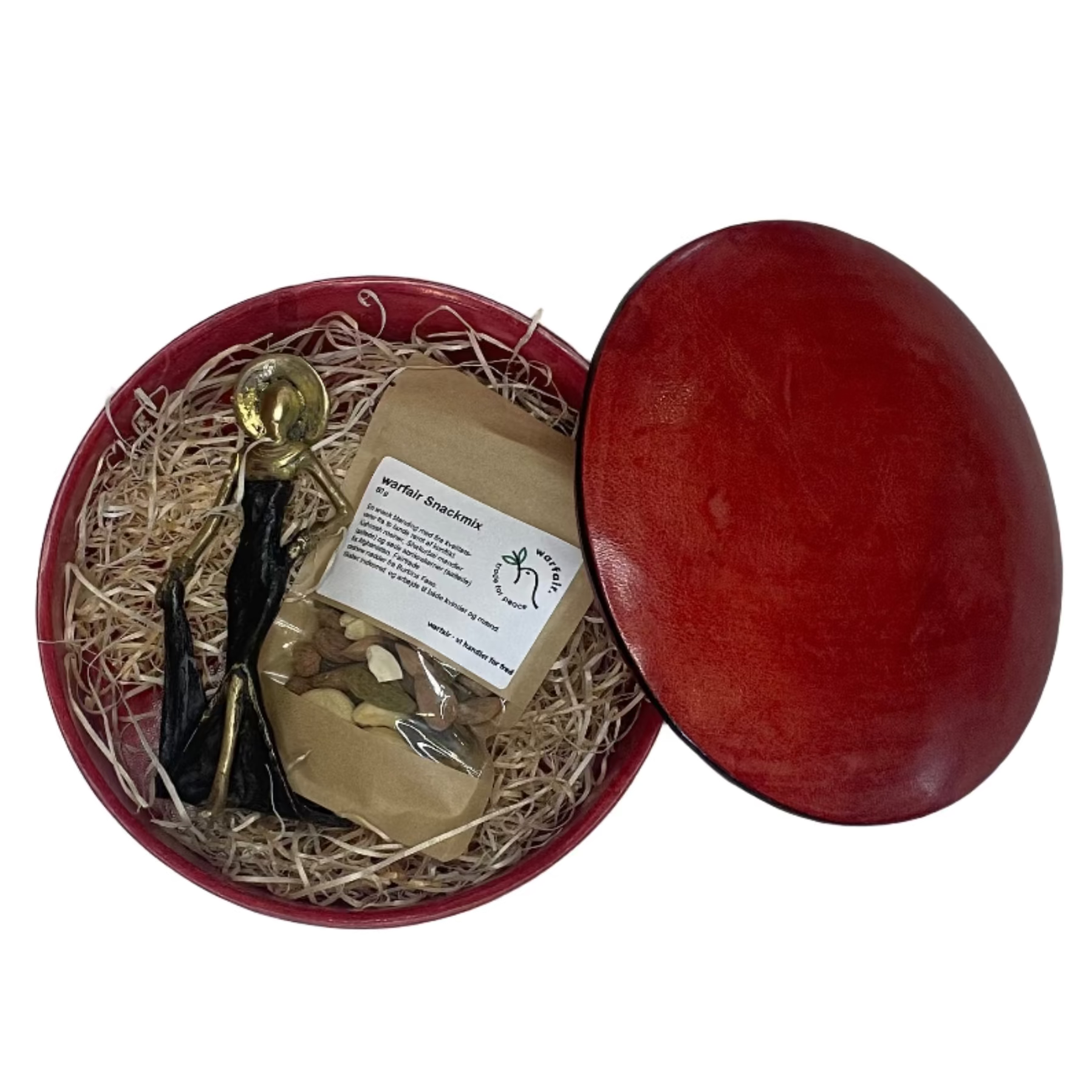 Læderæske, messing kvinde, øko snack-mix fra Burkina Faso