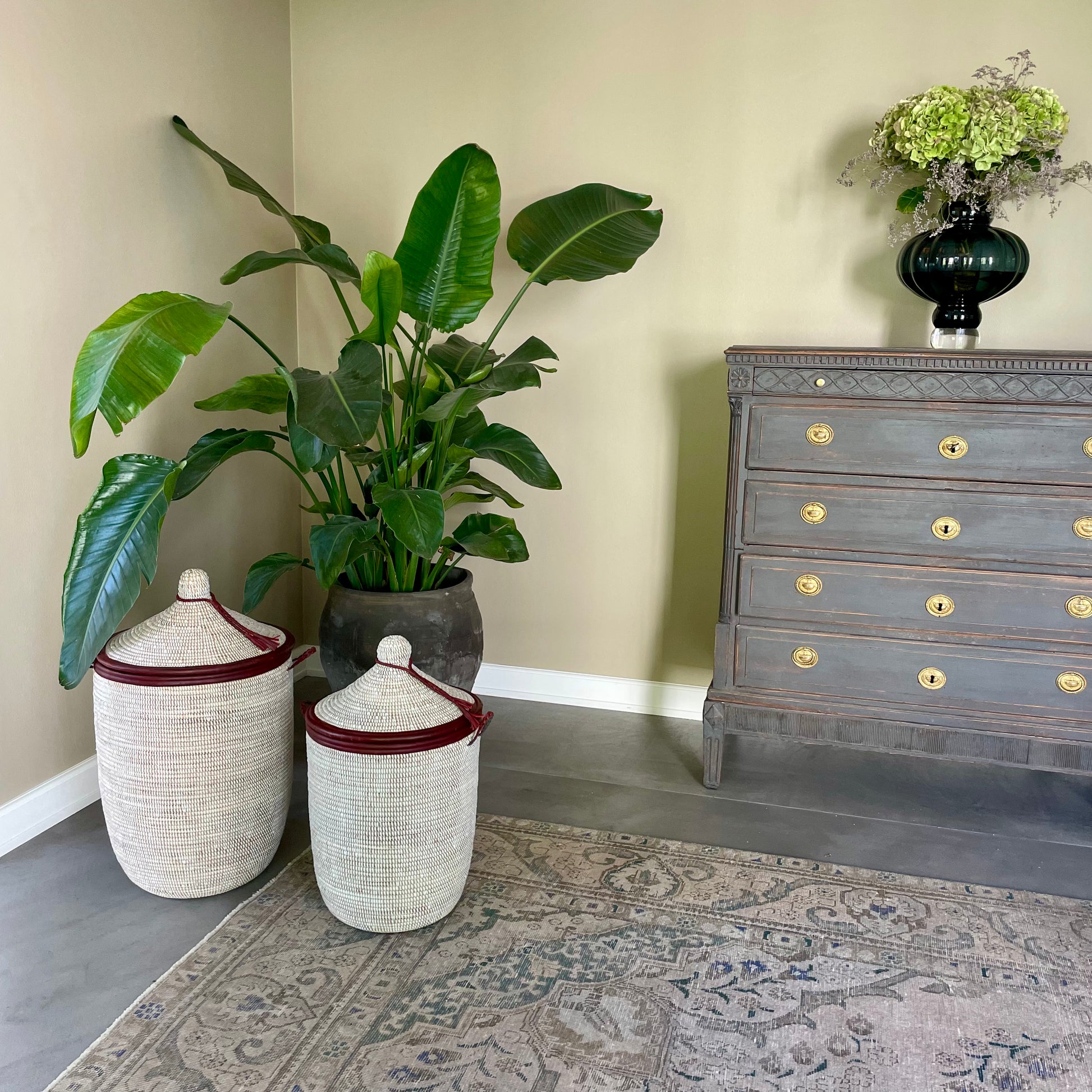 NOTE: Please note that these baskets are made of elephant grass - and not seaweed. This means that they are moisture resistant and retain their shape.