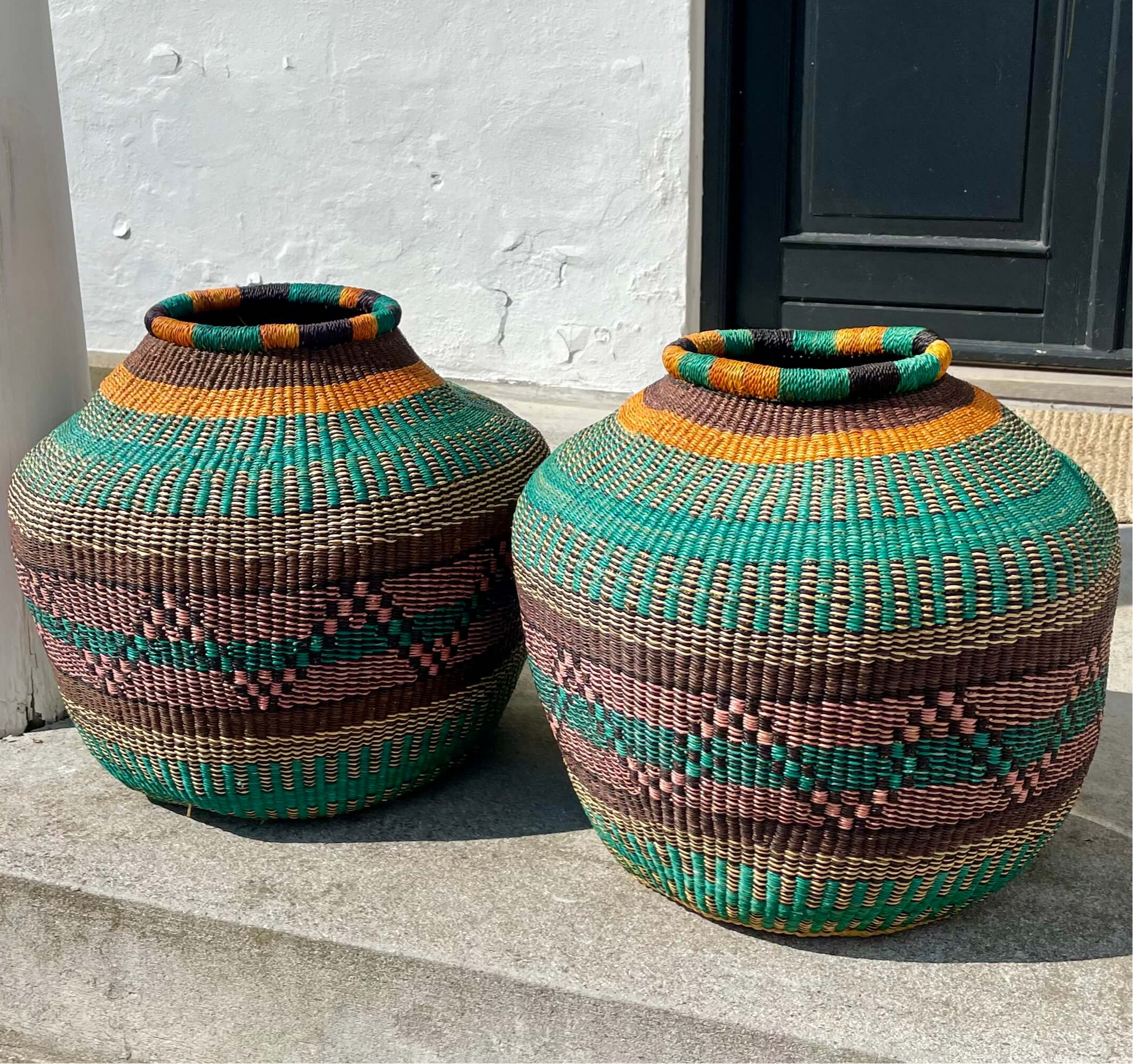 The absolute most beautiful art baskets from Ghana. Place one or three in a corner, next to the sofa or anywhere else. No matter where, the beautiful baskets will decorate and add a unique ethnic style. You can optionally have a single slender plant standing in them.