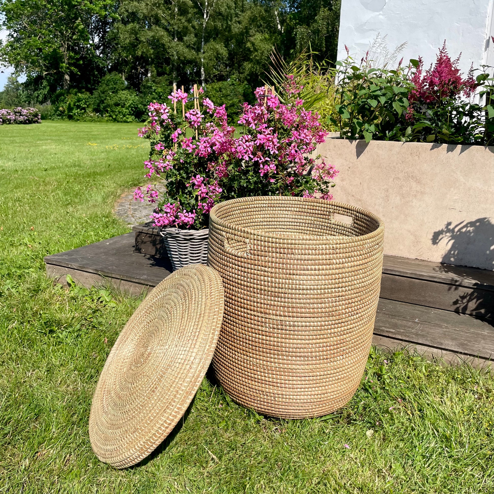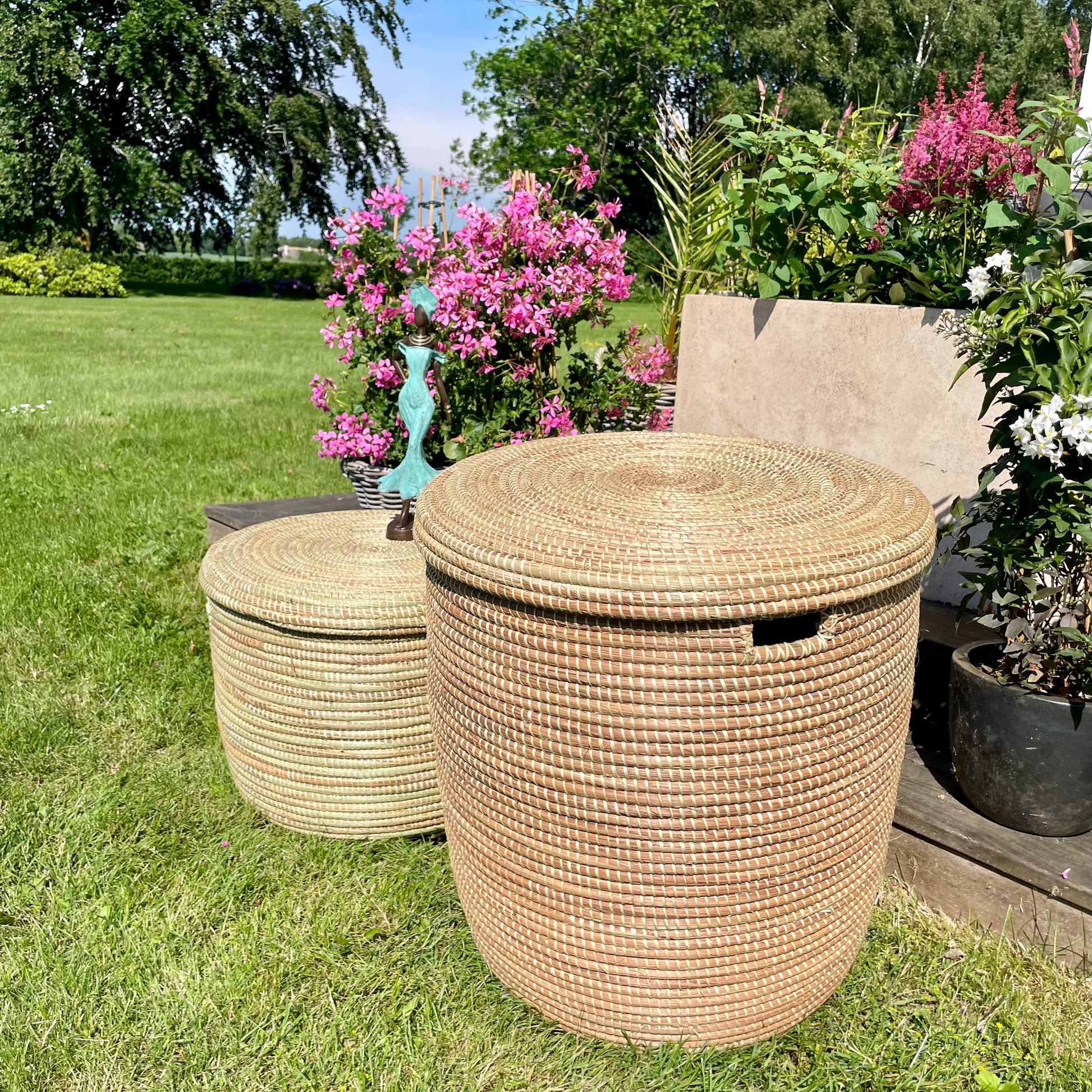 The most beautiful handwoven baskets with flat lids that can also be used for laundry/coffee tables/bedside tables.