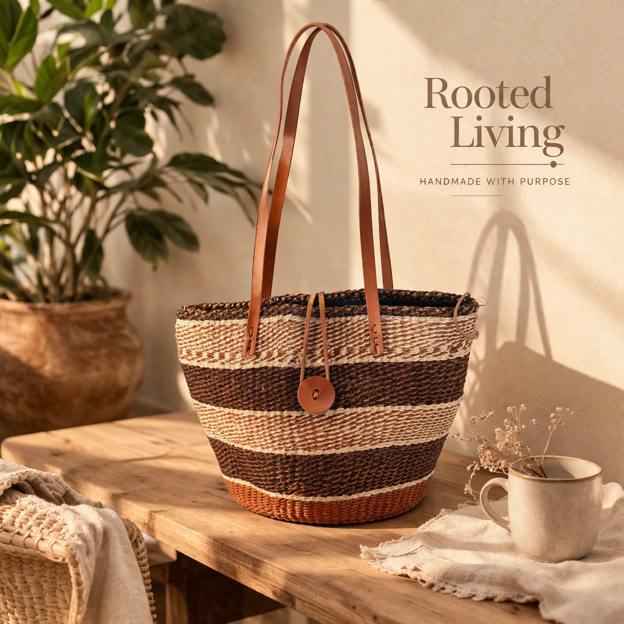 Taskerne flettes af kvinder i Afrika. Gennem håndværket får de mulighed for at skabe indkomst og bidrage til familiens forsørgelse.