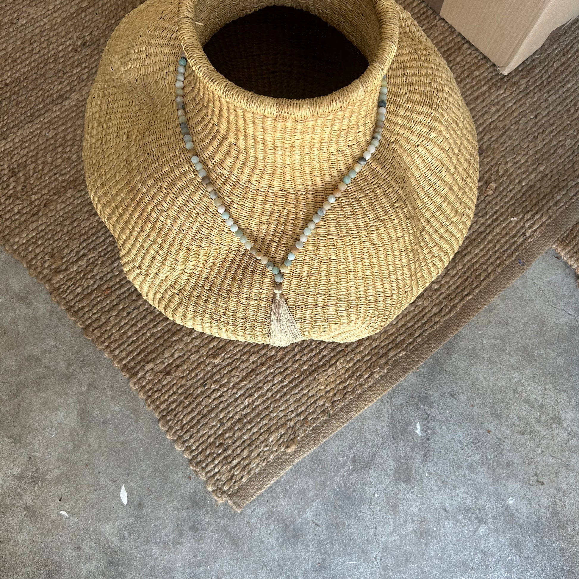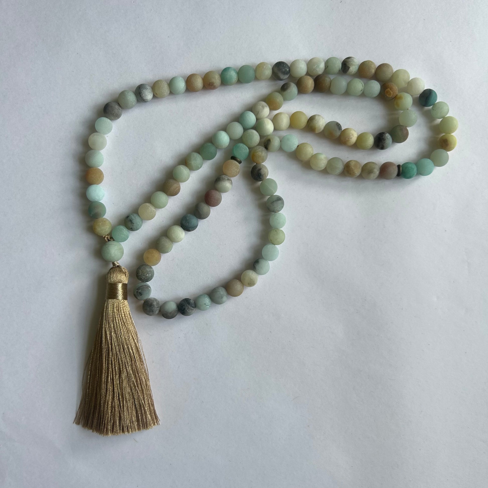 A beautiful mala chain with 108 beads in agate stone. Each chain has a tassel pendant.