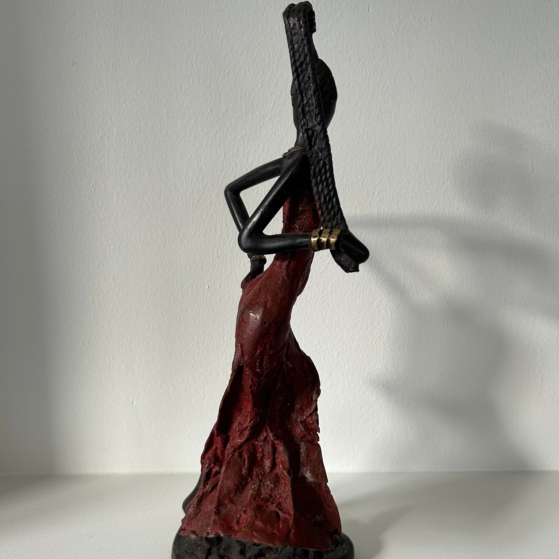 Brass art, 'Power Woman' in red & long hair, 35-37 cm, Fair Trade, Burkina Faso