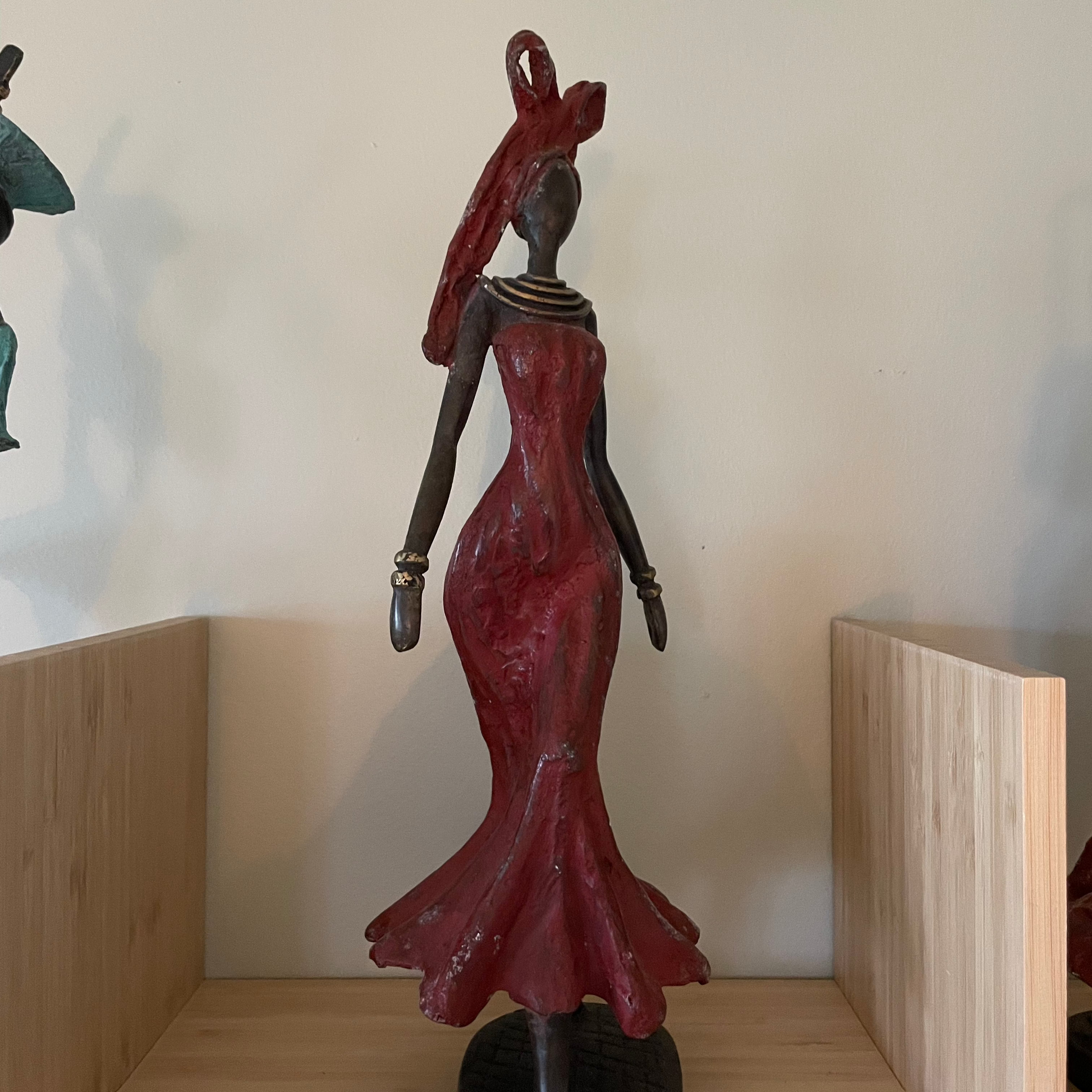 Brass art, 'Power Woman' in red dress, 35-37 cm, Fair Trade, Burkina Faso