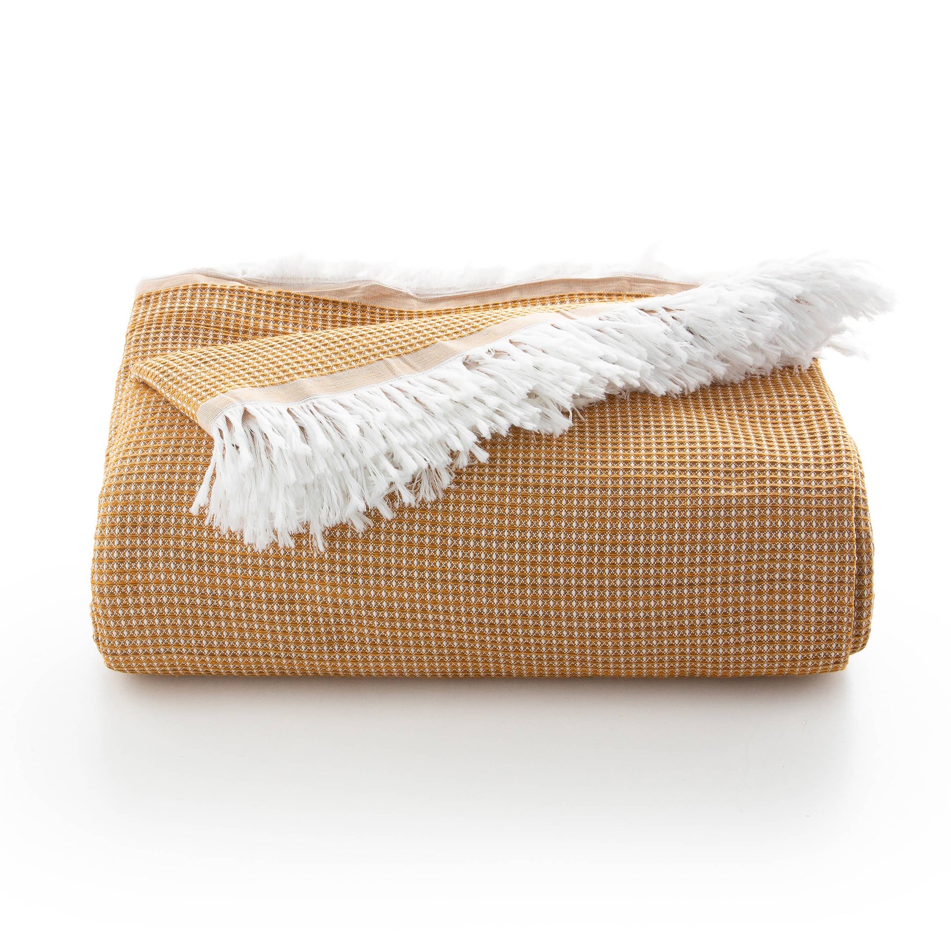 Et plaid med smukt bikubemønster, der forener funktionalitet og design. Den kan bruges som sofaplaid, tæppe, dug, let gulvtæppe eller dekorativt element – perfekt til at skabe hygge og stil i hjemmet.