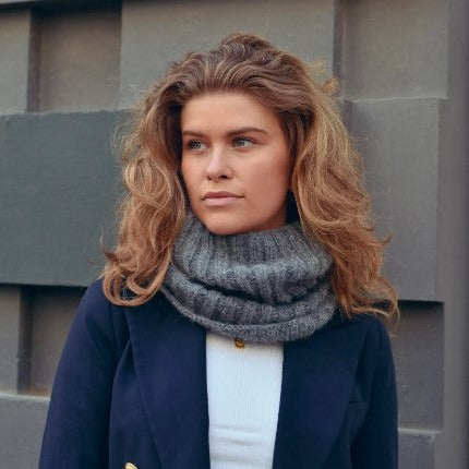 The alpaca wool blend is exactly what we want it to be. Pampered so you can snuggle up in it in the early mornings. In the first 4 years, we bought yarn for the knitters through Danish wholesalers. Gradually, we tested ourselves until we found that precisely brushed wool in alpaca is what we are after. The alpaca is the best source of wool. It is gentle in its environment, drinks very little water and eats only the outermost twigs over a large area. The wool is the most tempering wool. So it's perfect for our changeable weather. At the same time, it holds water up to 40% of its own weight without losing its ability to warm you. We have added the 18% recycled polyamide to ensure that the tube can cope with an infinite number of uses and remains firm and beautiful. When we started building our own yarn after a few years, we were the first in Denmark to introduce brushed wool with recycled polyamide.