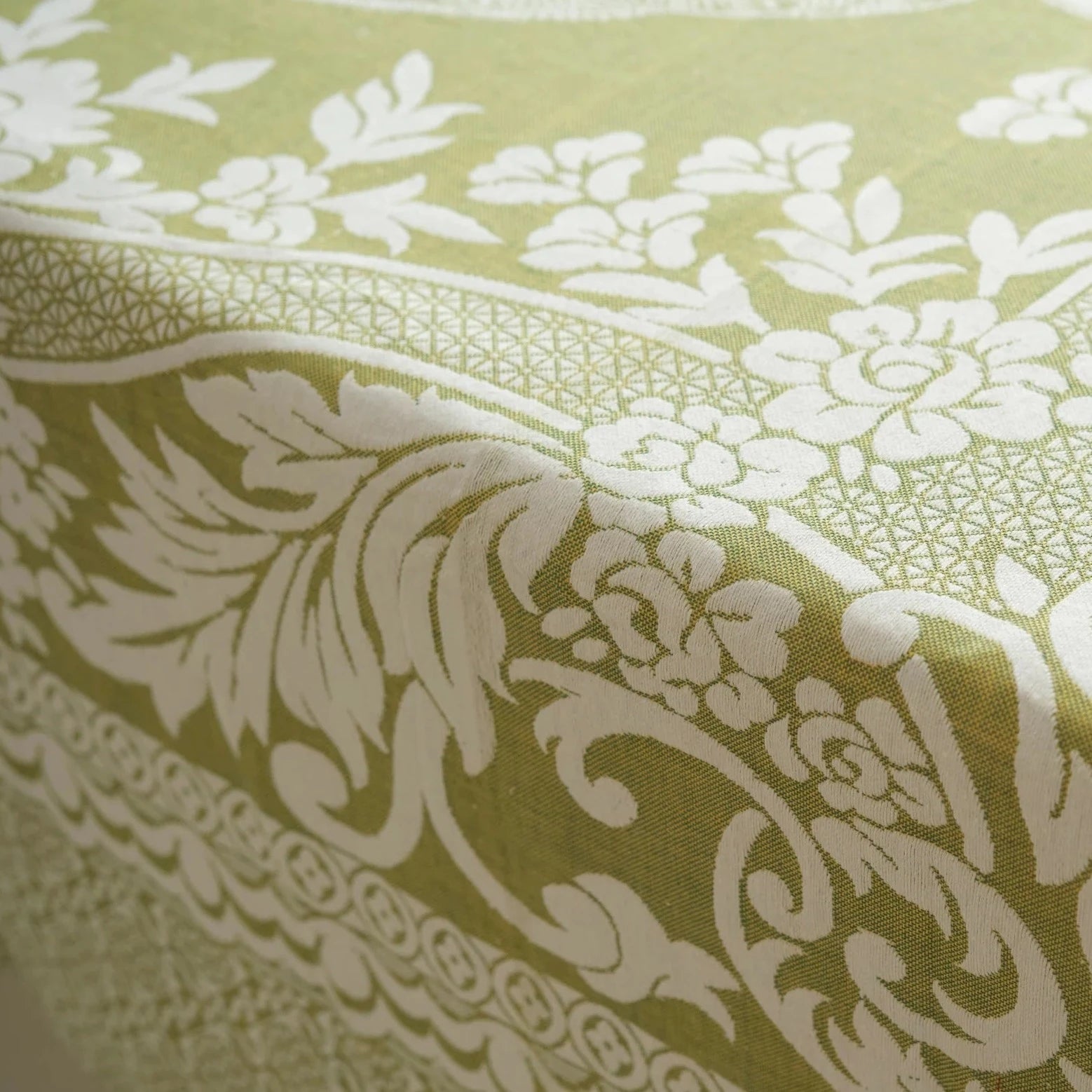 Tablecloth, in pistachio green, damask weave in organic cotton