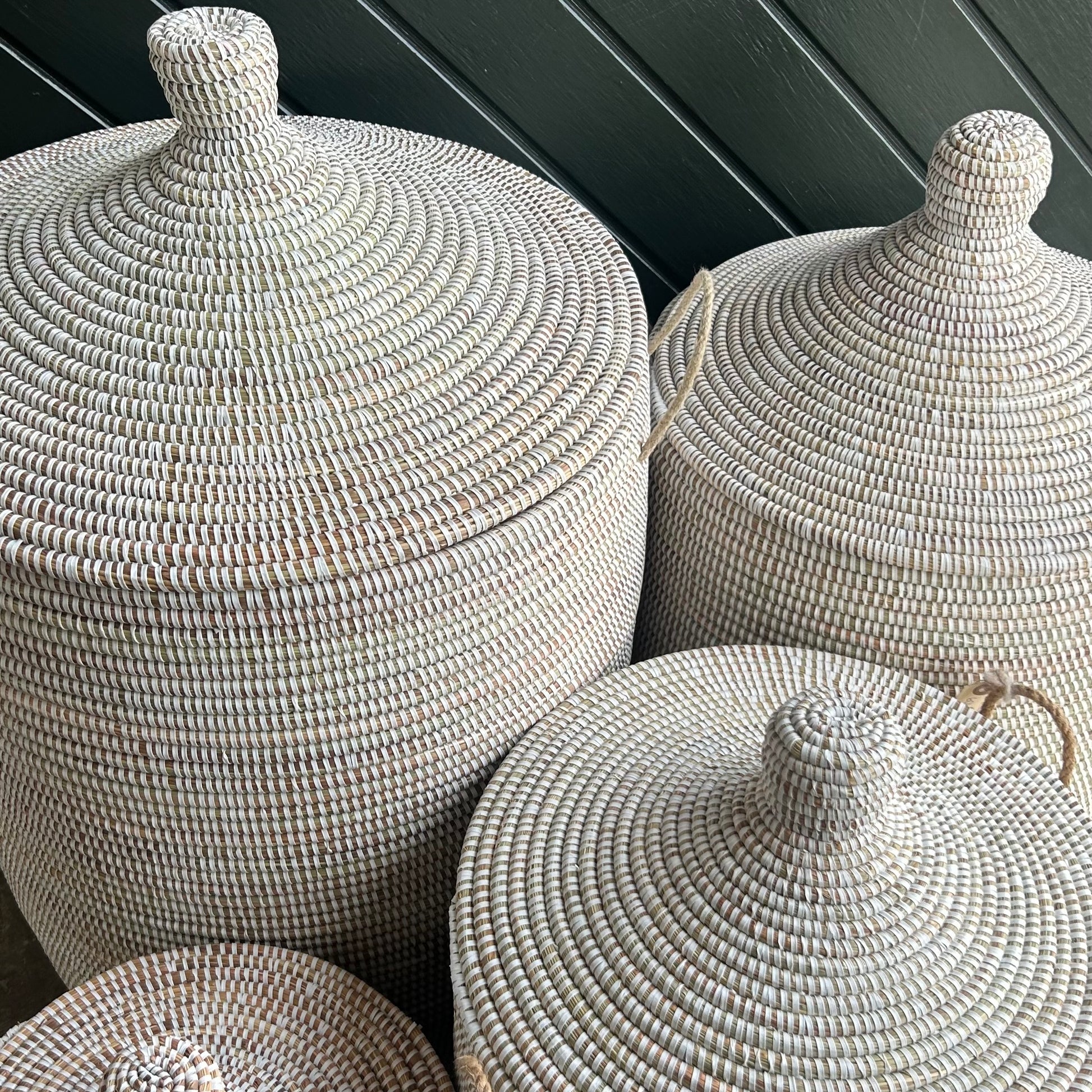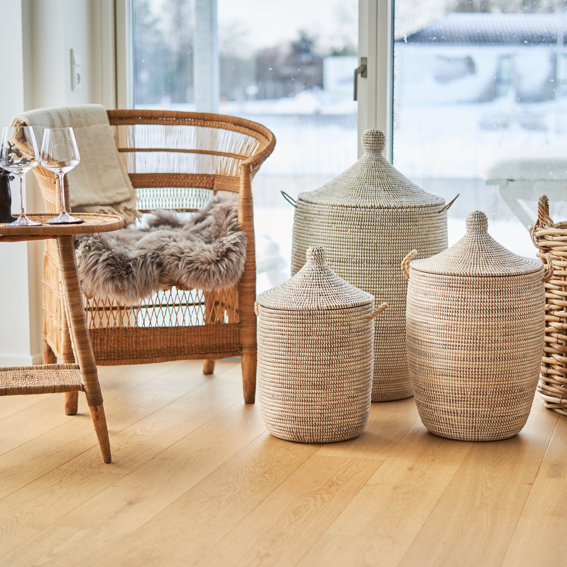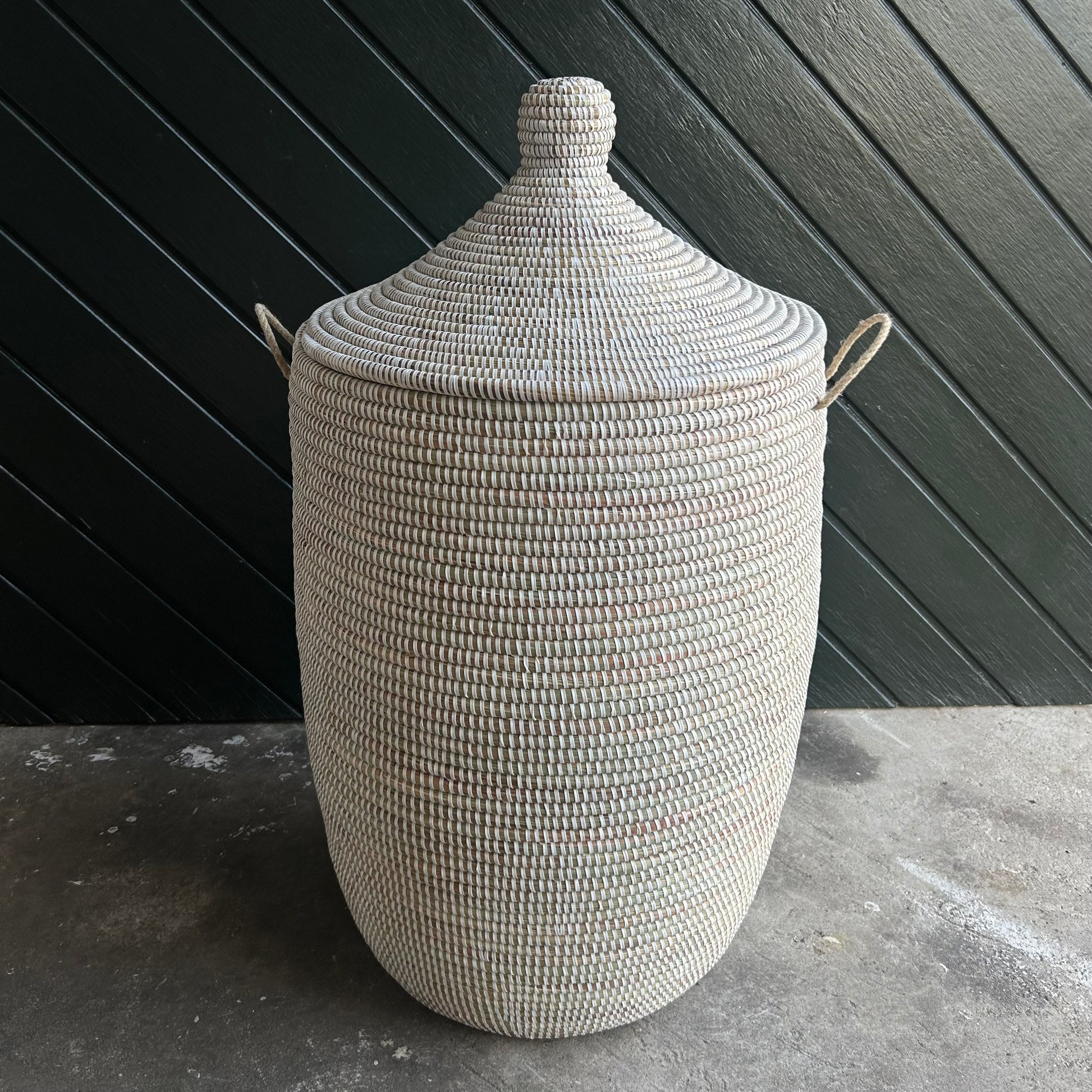 Laundry basket, White, handwoven with Senegal lid. Fair Trade