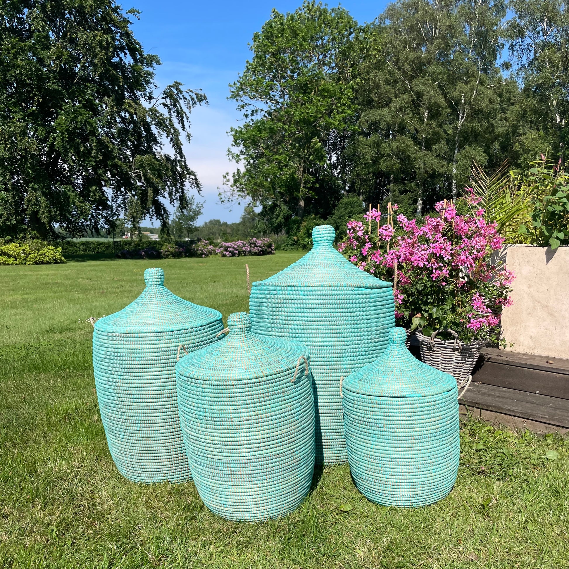 Laundry basket in turquoise with Senegal lid. Fair Trade