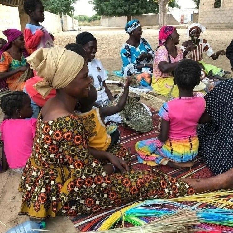 Our baskets are produced by a group of women from the Theis Region, approximately 122 km north of Dakar, Senegal. These women work hard to support their families. They either work on our products or work on cultivating their fields. Most of the women's villages do not yet have electricity and water, meaning they have to walk several kilometers to charge their phones and fetch water. Weaving baskets has long been a means of earning extra money in addition to cultivating the fields.