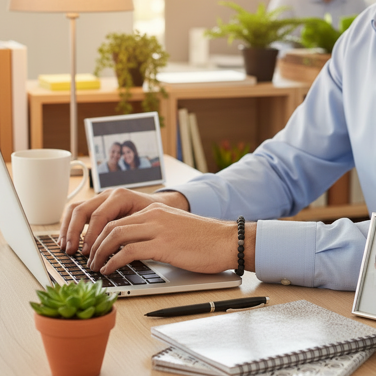 Armbånd til mænd, polerede lavasten og fem grå agater