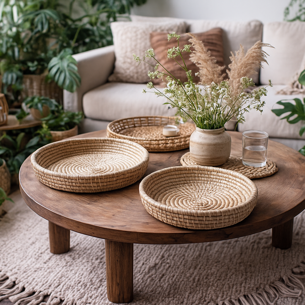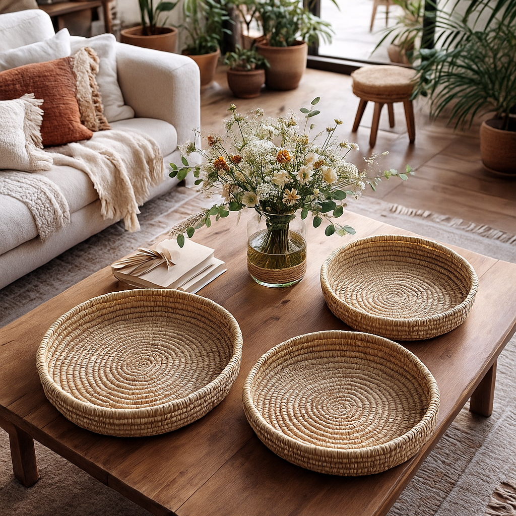Smukke håndvævede kurve der kan anvendes til brød, frugt eller som smuk dekoration.