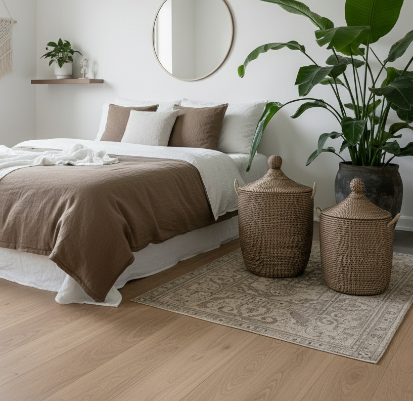 Mørk brun vasketøjskurv, håndflettet med Senegal-låg. Fair Trade