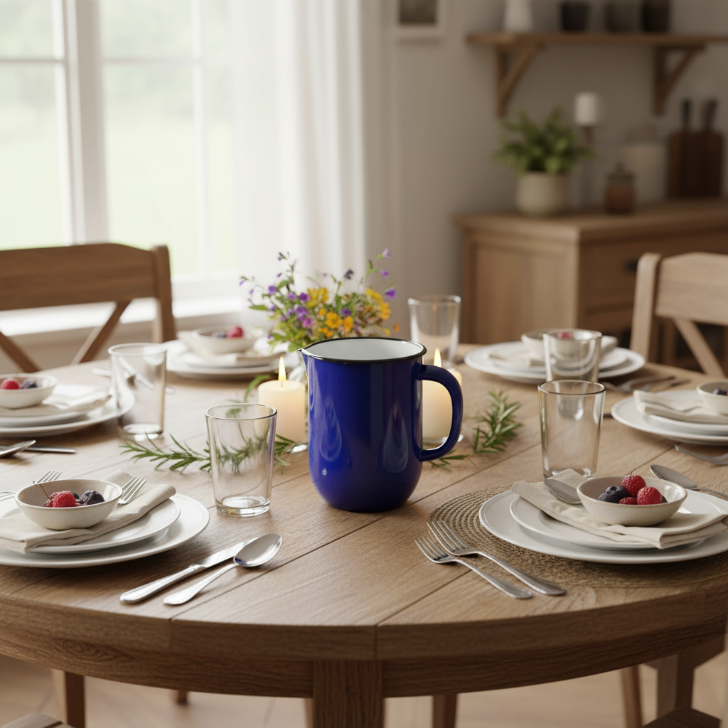 Karaflen er fremstillet i høj kvalitet med ekstra tyk emalje, som gør den både holdbar og utrolig behagelig at bruge i hverdagen. Det er et gennemført håndværk, der kan holde i mange generationer fremover.