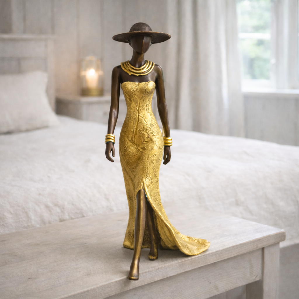 Disse elegante bronzeskulpturer er skabt af den burkinske kunstner Soré. Hver figur er unik og kan derfor variere en smule fra billedet.
