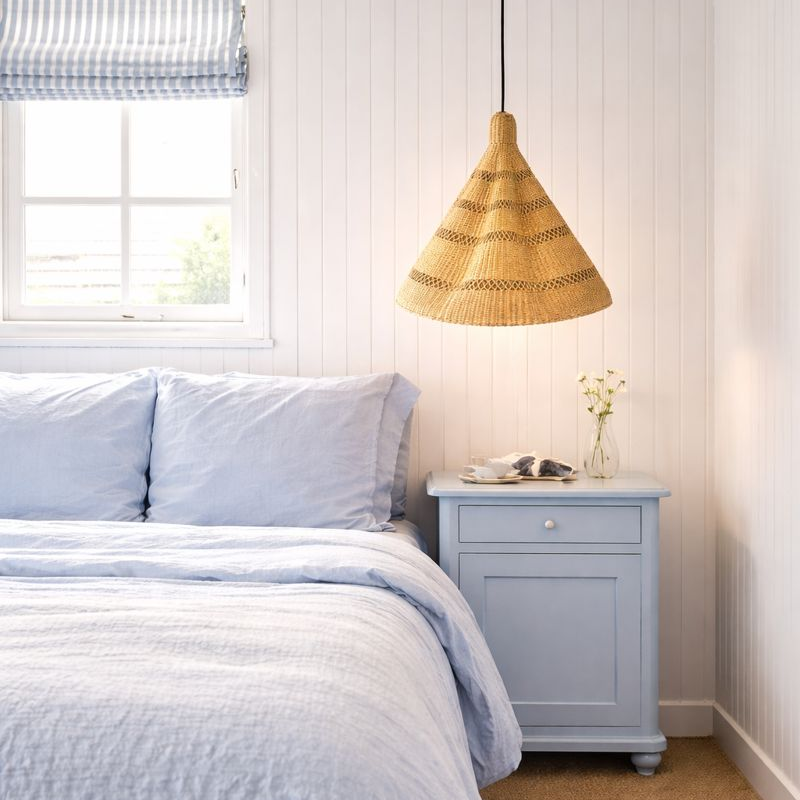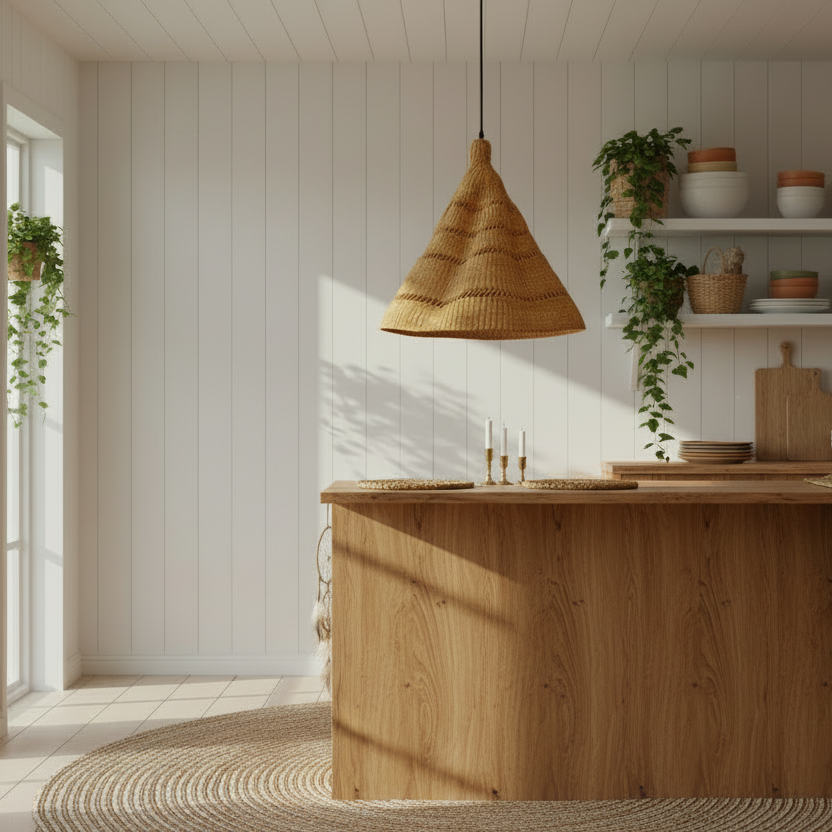 Håndflettet smuk bohemian lampeskærm. Lavet i elefantgræs og tåler derfor fugt/vand. Det betyder, at den kan hænge udenfor med f.eks. solcelle pære i, lyskæde m.m.