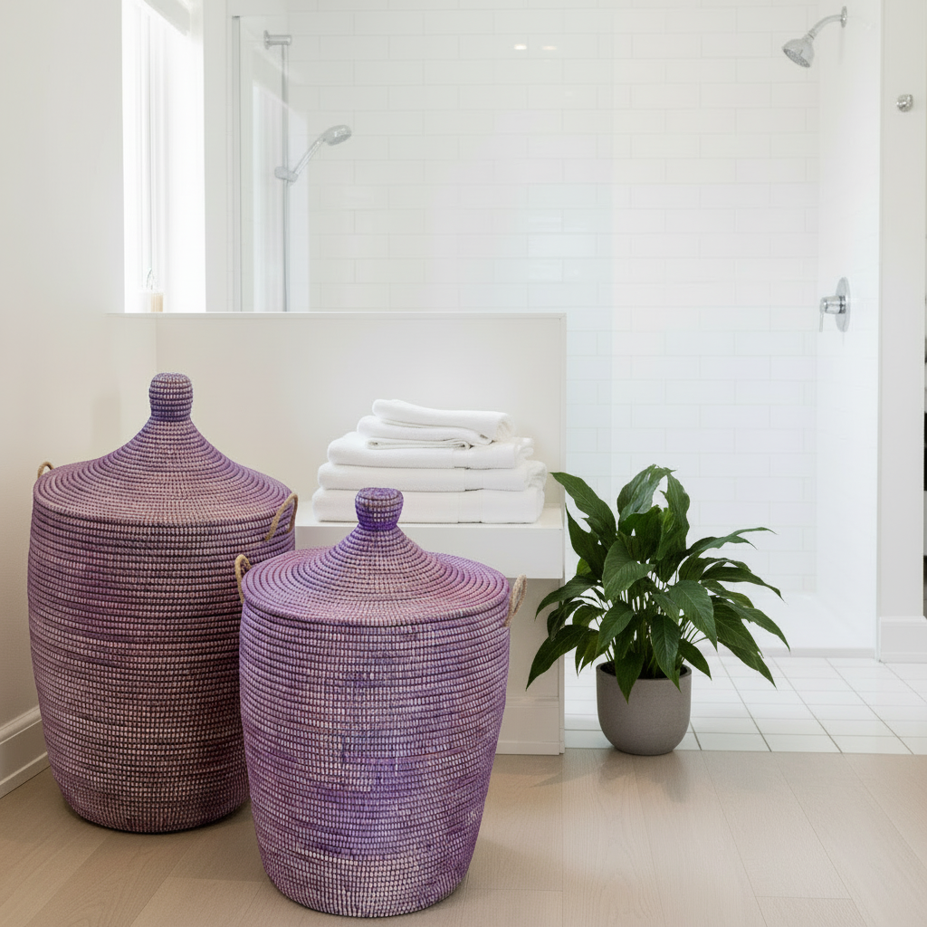 Lilla vasketøjskurv, håndflettet med Senegal-låg. Fair Trade