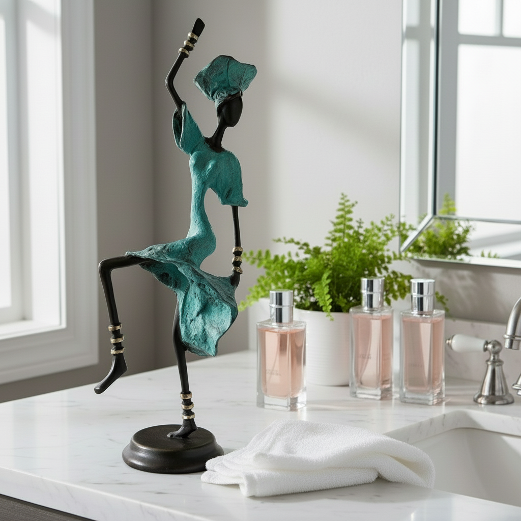 Messingkunst, 'Free spirit' i turkis, 30-36 cm. Fair Trade, Burkina Faso