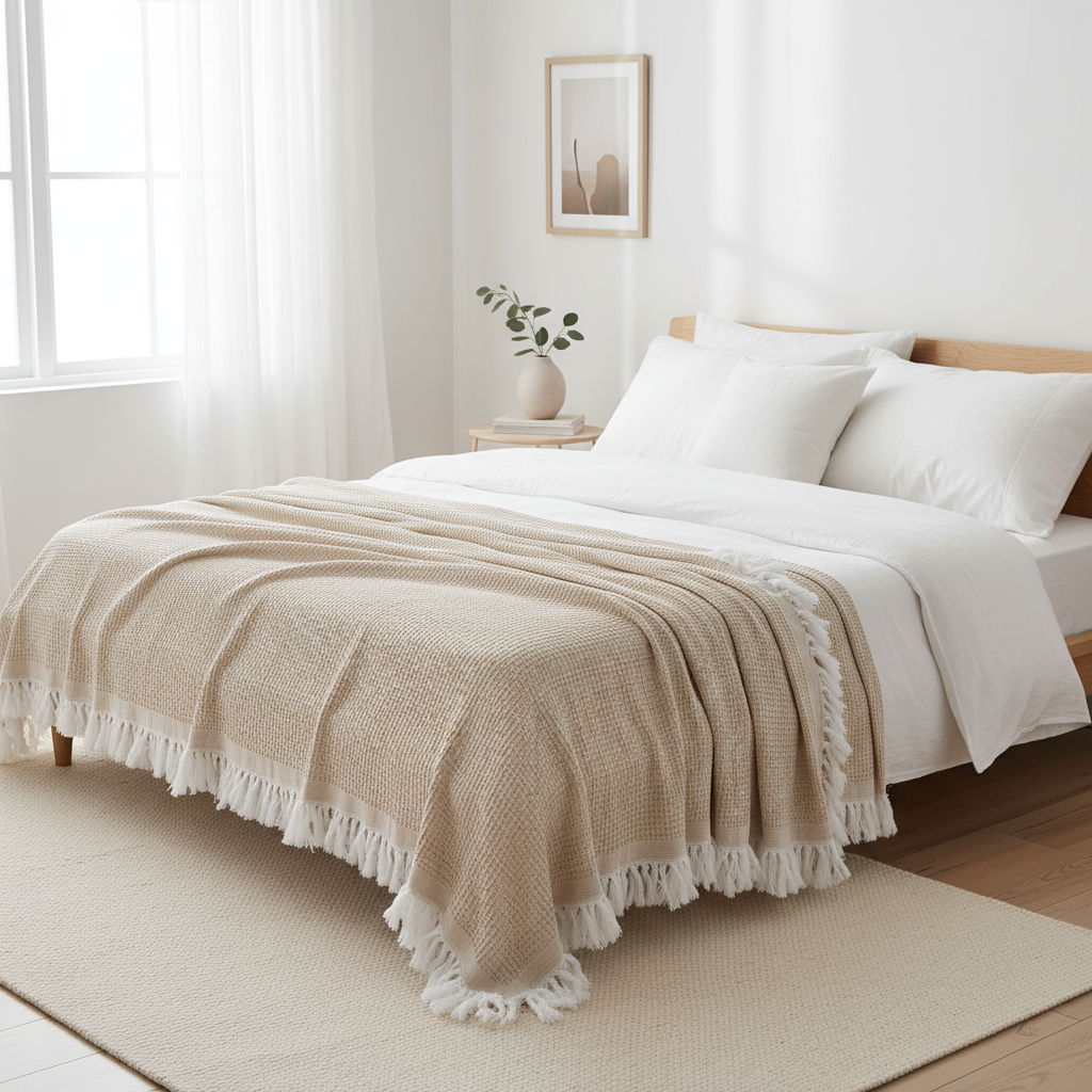 Den kan bruges som sofaplaid, tæppe, dug, let gulvtæppe eller dekorativt element – perfekt til at skabe hygge og stil i hjemmet.