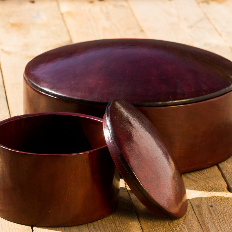 De smukkeste Fair Trade håndlavede Tuareg læderæsker fra Burkina Faso. De dekorative æsker fås i 2 størrelser og masser af farver. Brug dem til dekoration, smykkeskrin, nøgler, små dimser, vatrondeller eller meget andet.