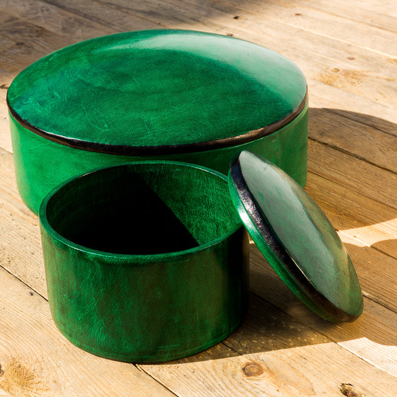 Touareg folket (eller det blå nomadefolk) har lang og stolt tradition for at arbejde med skind. Oprindeligt kommer skindet fra geder, får og lam der vandrede med dem. I dag har mange slået sig ned i Vestafrika og får skindrester fra bl.a. store italienske modeproducenter, du vil derfor opleve at æskerne er lavet af det blødeste skind.