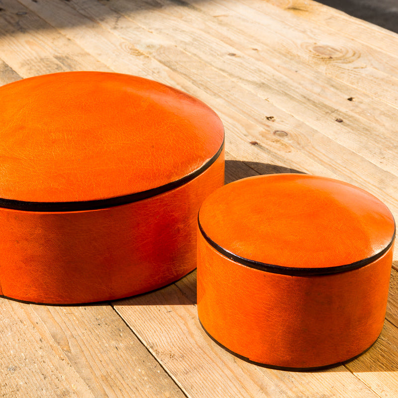 Skindæske i orange, to størrelser. Fair Trade fra Burkina Faso