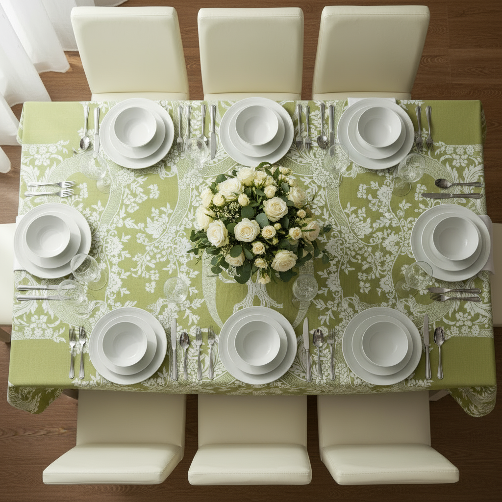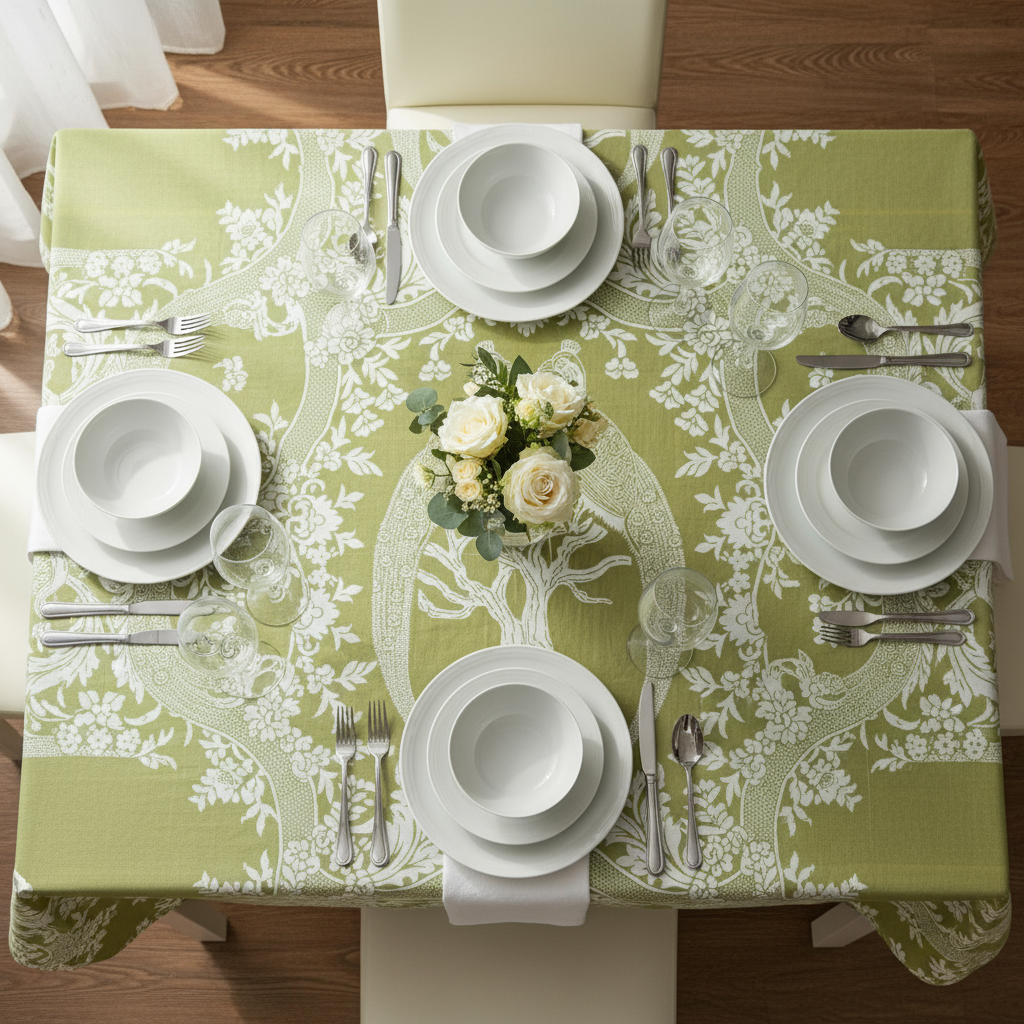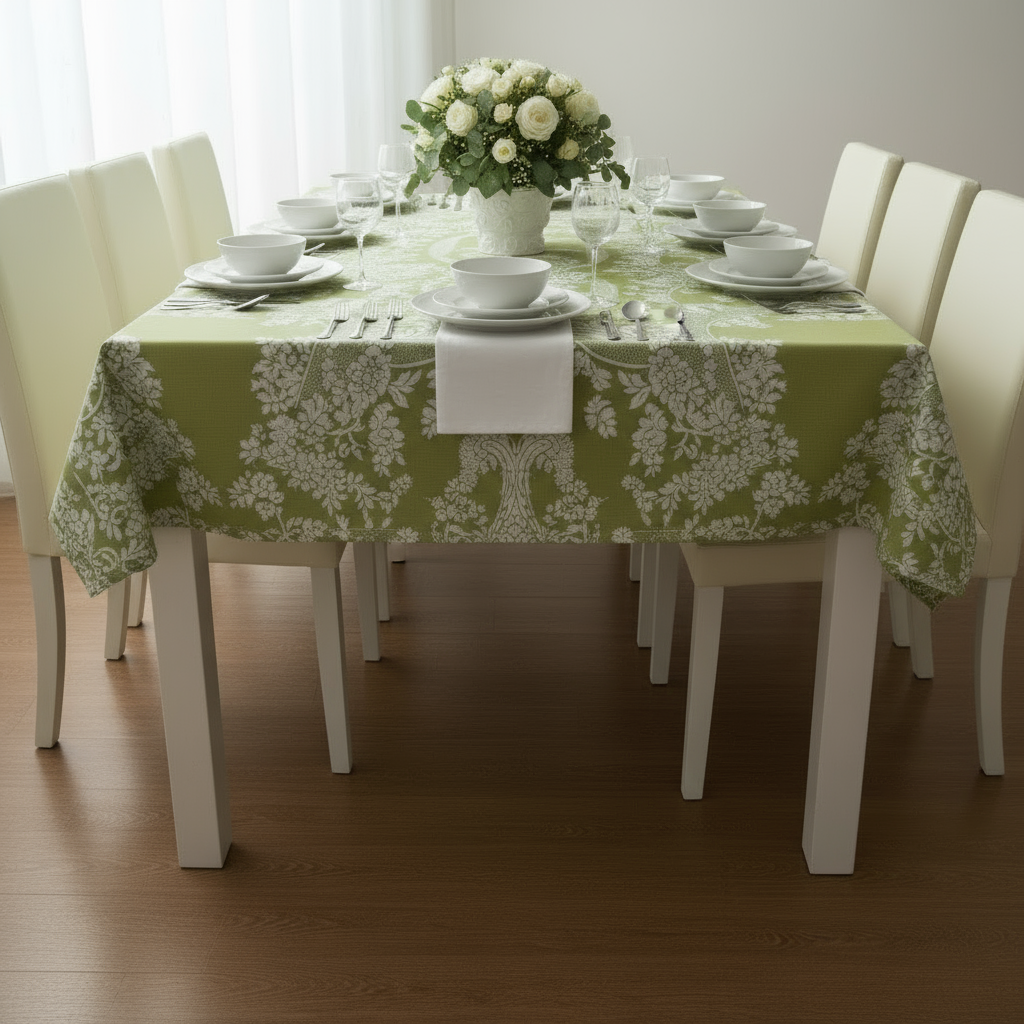 Dug, i pistaciegrøn, damaskvævning i økologisk bomuld