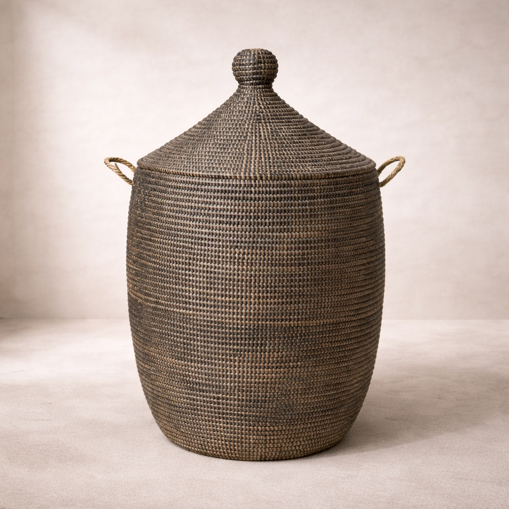 Vasketøjskurv. Sort med låg. Fair Trade, Senegal